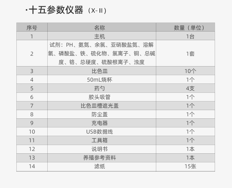 專業(yè)應用于檢測水產(chǎn)養(yǎng)殖水質(zhì)指標的專業(yè)儀器 12項檢測指標(余氯 亞硝S酸鹽 氨氮 溶解氧等等)涵蓋了水產(chǎn)養(yǎng)殖中水質(zhì)檢測的基本要求。該儀器主要優(yōu)點數(shù)據(jù)準確、操作簡單是國內(nèi)目前水產(chǎn)養(yǎng)殖行業(yè)內(nèi)性價比較高的便攜式水質(zhì)分析儀。它為科學的精細化水產(chǎn)養(yǎng)殖提供了最直接的工具。